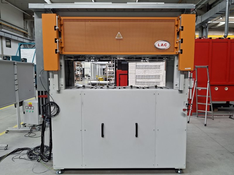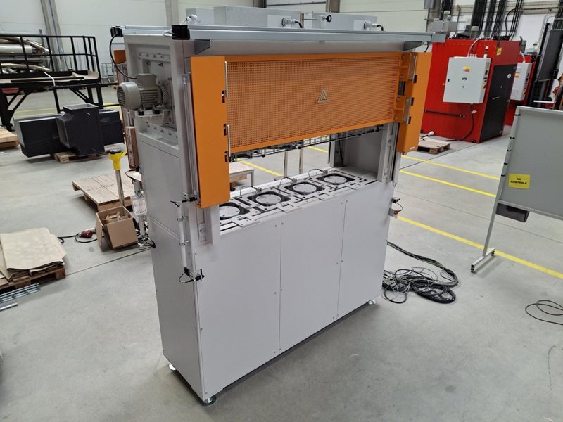 The large variety and quantity of processed electrical or mechanical components in the e-mobility drive sector usually requires multiple thermal process steps. One of the customer's requirements was tempering (heating and maintaining at the target temperature) of parts between individual steps in the production of the electric drive. For this purpose, we have designed an atypical low-temperature furnace S 240/03 with bottom automated loading. The charge is inserted and removed from the furnace by a robot and is fully automatically inserted on platforms into 4 heated separate chambers. Heat transfer to the charge is ensured by convection (circulation of the atmosphere in the furnace chamber). This compact device is fully automated and integrated into the production line.