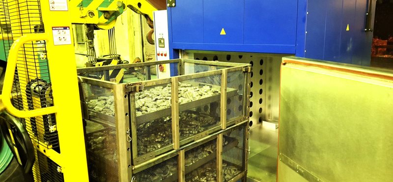 The solution is provided by the automated heat treatment line KNC/V 1800/60 with a working temperature of 550 °C, designed for the thermal process of solution annealing followed by rapid cooling in a water bath (quenching bath) KLV 4000. The line is a combination of two basic devices – electric chamber portal furnaces with a bottom (vertical) installation using a hanging basket and a cooling bath with cooling in water (or oil or a mixture of water and polymer). Depending on the location of the water bath, the line can be installed in the floor or on the floor.