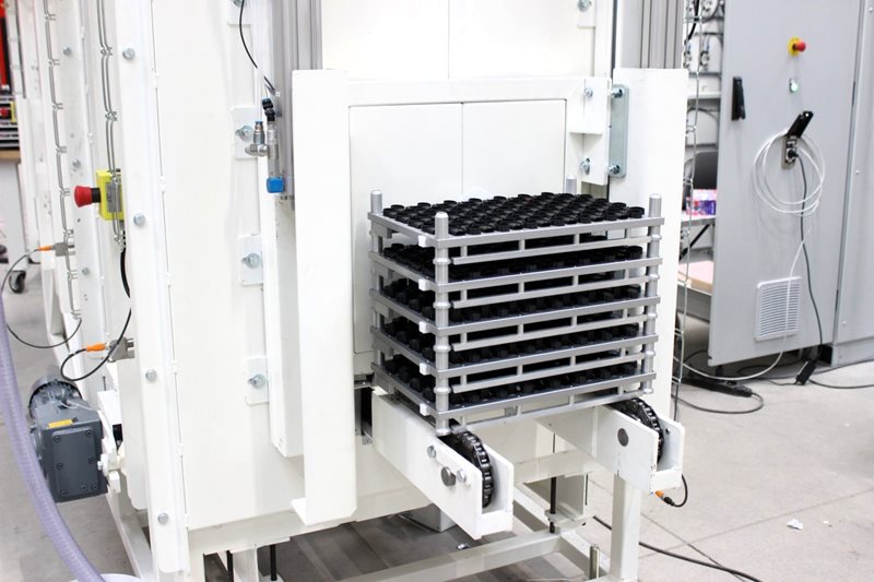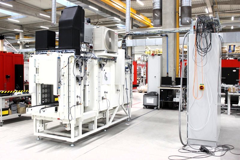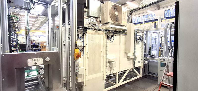 A common customer requirement is also controlled cooling of the parts to a defined temperature. In this case, we used an air conditioning unit for cooling. The furnace is integrated into the production line and fully automated.